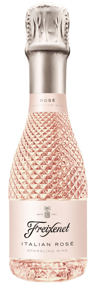 Mini flesje prosecco Freixenet Rose in folie met een gepersonaliseerd A7 kaartje